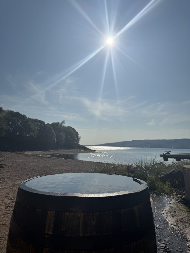 Guests enjoy easy, direct access to the sea at both high and low tide, making cold water swimming and dipping simple and safe year-round. For those who prefer not to enter the sea, we also provide cold plunge barrels with a continuous flow of fresh water, along with outdoor cold showers. Between hot and cold rounds, guests can relax on outdoor seating, regulate their breathing, and take in the coastal surroundings.