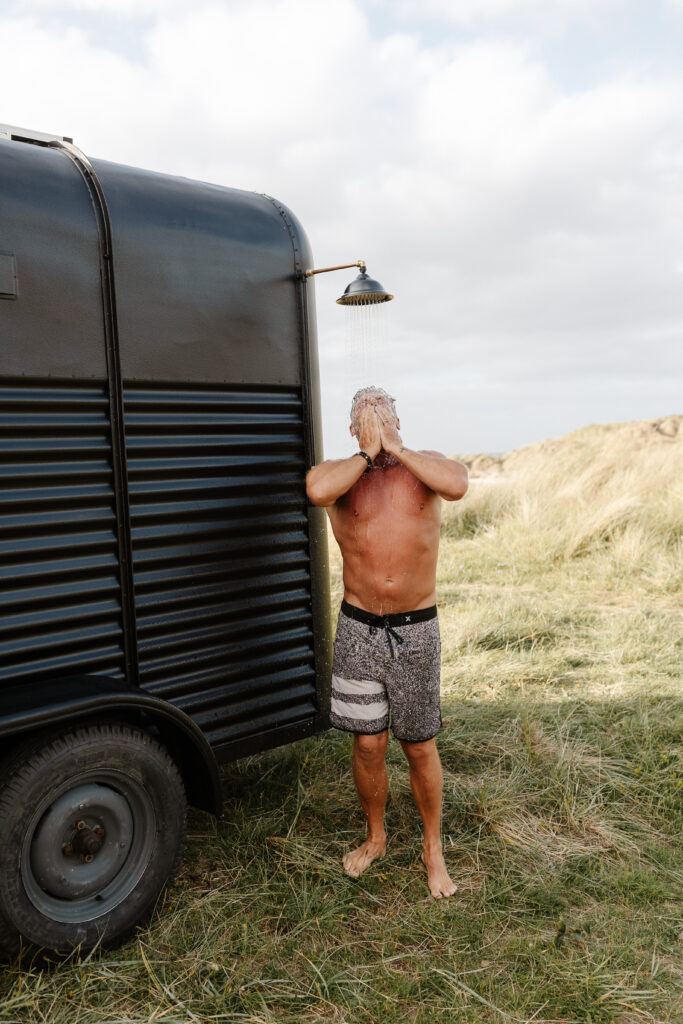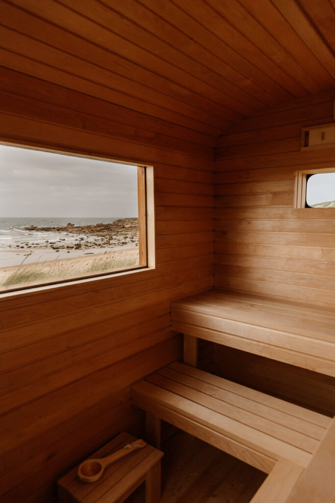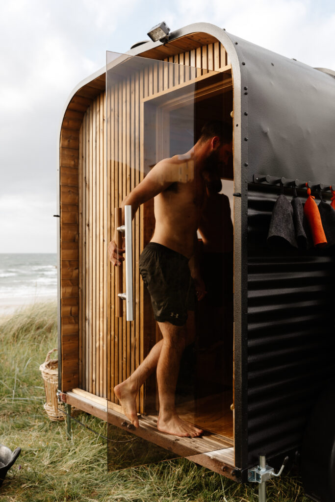Fyrhus sauna is a lovingly converted horsebox woodfired sauna nestled in the dunes on Hopeman East Beach. Hopeman is a charming coastal village located in Morayshire, Scotland. Situated along the Moray Firth, it is known for its picturesque scenery, sandy beaches, popular for swimming, sailing, and other water sports. The addition of Fyrhus Sauna compliments these activites and it is used by many local groups, local residents and tourists. Sauna bathers are treated to uninteruppted views of the Moray Firth and mountains beyond. Swimming in the sea (at your own risk) is moments away or there is a cold shower experience attached to the sauna if you prefer.