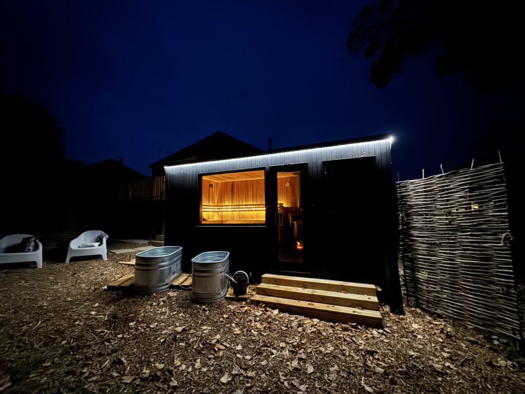 Cold plunge, Cold showers, Food served on-site, Wood fired sauna