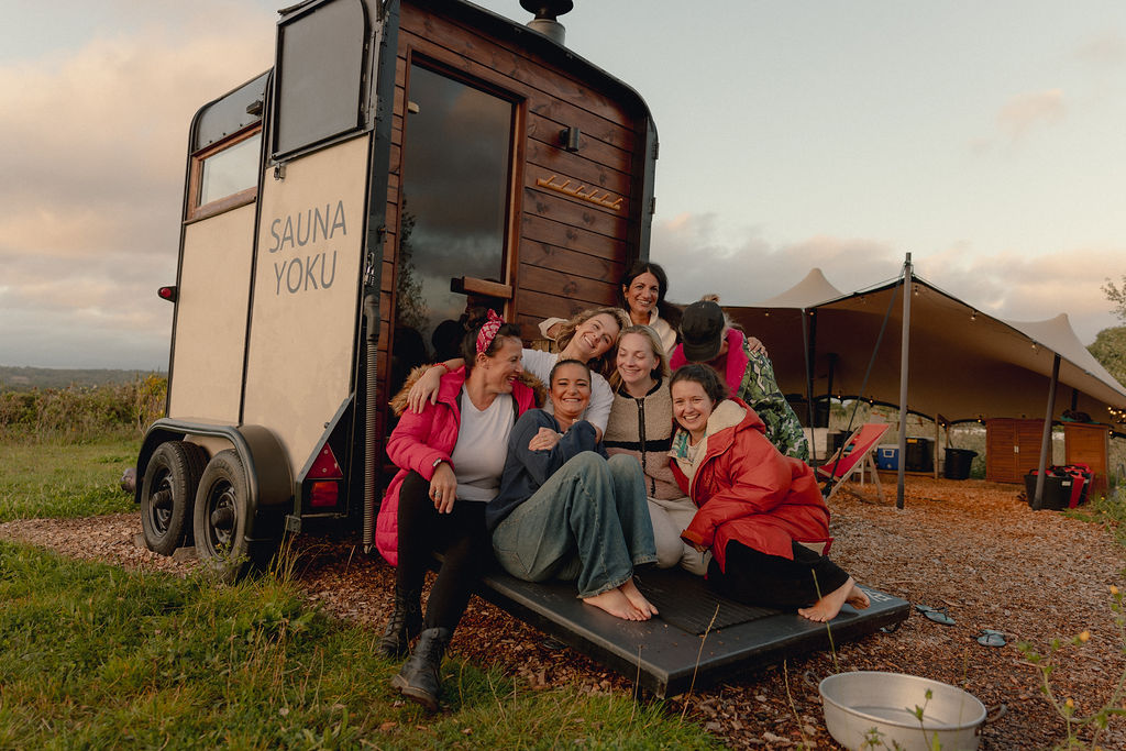 SAUNA YOKU is a handcrafted, wood-fired mobile sauna based at our beautiful home site, Holmsted Himalayas in Haywards Heath. With space for six and cosy shelter areas, we create a welcoming, connected and nurturing space for you to unwind.